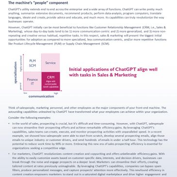 Designed specifically for small to midsize B2B businesses and business units, this booklet goes beyond simple ChatGPT use cases and prompting guides. It unveils the true potential of these new tools and their ability to reshape organizational processes, transform sales and marketing, amplify productivity, and ignite innovation.